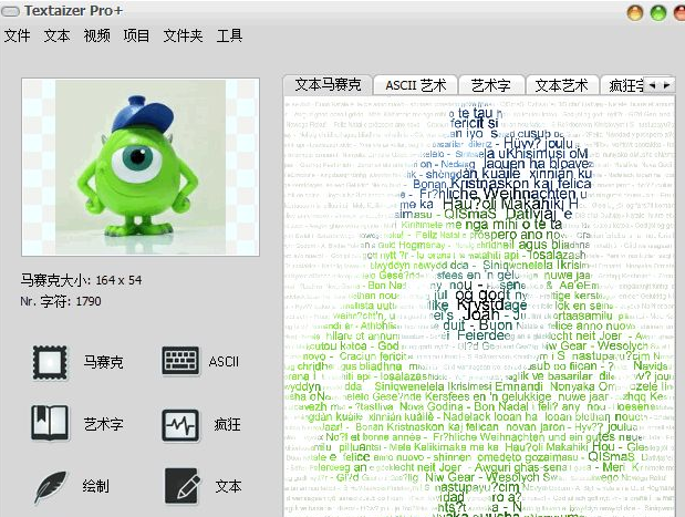Textaizer Pro 5.0 Build 70 Cracked 中文注册版发布。Textaizer Pro 5.0 中文注册版可以制作文字拼图、ASCII拼图等功能。Textaizer Pro 设置选项非常丰富,足够让你折腾一阵子。生成的效果可以保存为图片、文本和 HTML 格式的文件。