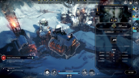 冰汽时代汉化版当你被逼到绝境时你会做什么?毕竟,你会成为什么样的人?都是为了生存,都是为了生存。作为一个领导者,你需要在发展需求、资源限制、同情心和谨慎选择之间取得平衡。在冰天雪地的世界里,人类发展了以蒸汽为动力的供暖技术,以抵御严寒。游戏的主线是管理城市和社会,但玩家也需要不时地考察外界,了解其昨天和今天。你的任务是建造地球上最后一座城市,并为城市的生存获取必要的资源。为了城市的生存,你会做出什么选择?