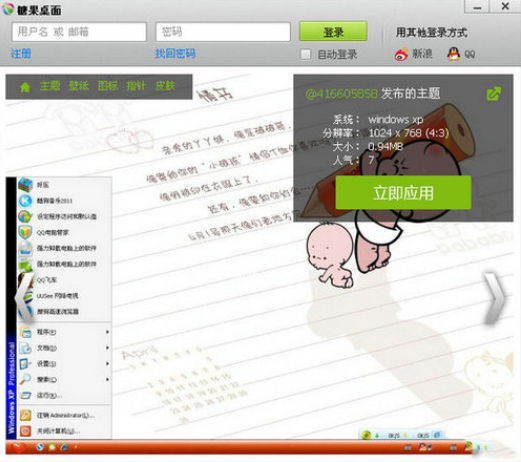 糖果桌面网站上的所有资源只需要在网页上点击一下“立即应用”就能立刻应用在自己的系统上。