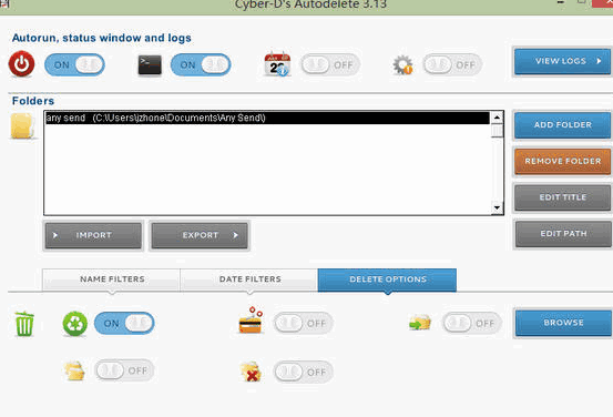 Cyber-Ds Autodelete 是一个自动删除文件工具,通过它你可以设置时间过滤、文件过滤规则,让 Cyber-Ds Autodelete 来为你自动删除。