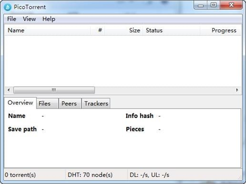PicoTorrent是为Windows设计的一个友好的BitTorrent客户端,具有高性能和低内存使用,PicoTorrent的logo设计的非常漂亮、软件界面也十分的简单易用,是bt下载软件中又一个非常好的选择!
