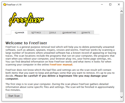 您可以找到有关FreeFixer如何工作的详细信息以及其查找的项目当在线FreeFixer手册扫描您的计算机时。