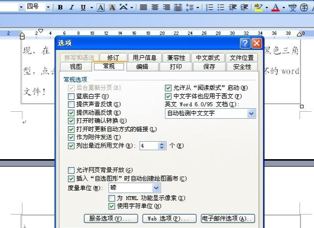 1、找任意一个未损坏的文件打开word,在工具-选项-常规中,选中“打开时确认转换”;
