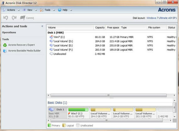 Acronis Disk Director免费版可用于在磁盘上直接存取和编辑字节。