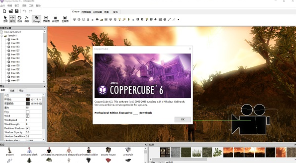 Ambiera CopperCube下载电脑版,无功能限制,解锁全部的内容,这是一款交互式三维场景创建软件,这款软件为用户提供了多个平台创建游戏所需的所有功能,相当的费用,特别适合工程设计单位,提供专业级别的三维功能,它是一款免费且易于使用的3D引擎,简单来讲就是一款三维场景建模软件,使用它您无需编程即可创建3D游戏与场景。需要的用户快来下载看看吧。