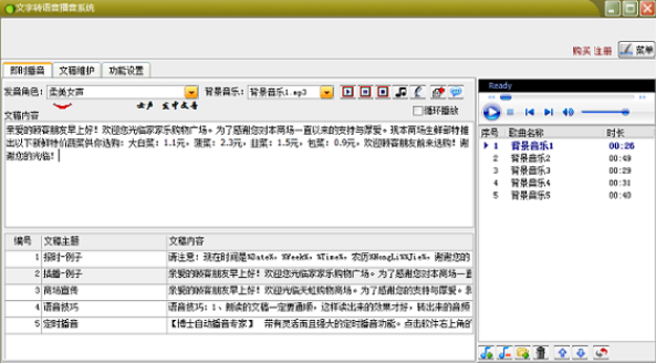 6、可随时试听文稿和背景音乐的合声效果,文字转语音播音系统增加了循环播放功能。