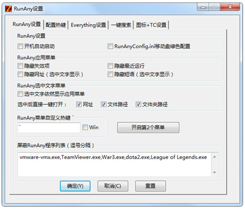 RunAny(快速启动工具)是一款很好的用的桌面工具,通过这款软件你可以为你的每个常用软件设置一个快速启动的快捷键。支持RunAny设置、配置热键、Everthing设置、一键搜索和图标+TC设置等五大功能。软件适用的范围非常的广泛,使用起来非常的方便快捷,感兴趣的网友快来下载体验吧!