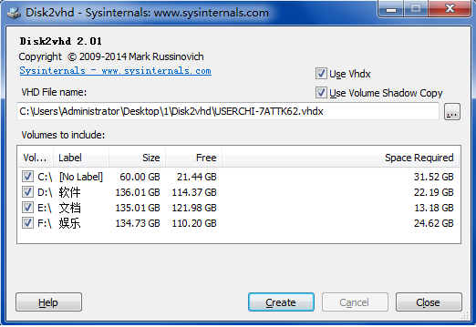 disk2vhd工具使用技巧