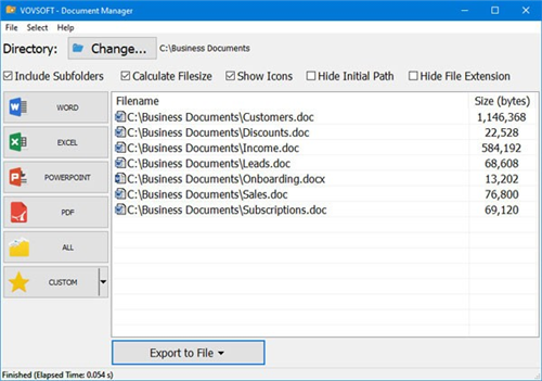 VovSoft Document Manager是一款非常好用的文档管理工具,用户只需选择储存文档的目录,即可在列表中获取所有文档,支持Word、Excel、PPT和PDF等类型的文件,帮助用户更加快速的访问。