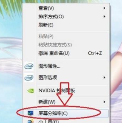 1.在电脑桌面上右键点击,在弹出的选项中点击【屏幕分辨率】,记下当前屏幕分辨率。