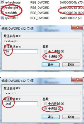 双击打开resheight(高度),在弹出的窗口中将高度调整为屏幕分辨率的高度(十进制的情况下),调整完成后点击【确定】。