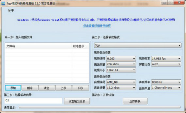 3GP格式转换器免费版使用描述: