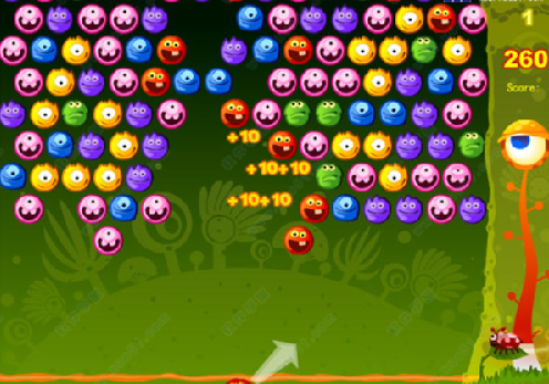 2、泡泡有多种颜色,相同的泡泡之间可以互相消除。
