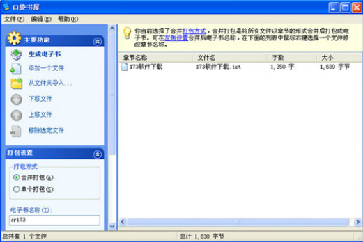 《口袋书屋免费版》这款软件非常的简单易上手,功能非常非常的强大,口袋书屋这里可以帮助用户实现各类格式转换,用户可以将下载的电子书转换成自己想要的格式,这款软件还可以让用户自己选择是合并处理还是单个处理,因为在电脑上支持的电子格式是不同的,用户还可以将他转换完成以后发送到自己的手机上面,在这里这款软件都可以轻轻松松的帮助你们完成,在含着泪用户还可以在手机上阅读或者是在电脑上存储文件直接打开电子书观看内容都是可以的,是不是非常的便利,这款软件的大小也不是很大,用户完全可以放心的选择。