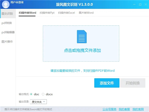 旋风图文识别软件能将图片的文字、图片分别识别出来并重新排版还原成原先格式。现前支持将扫描件的pdf转word,pdf转ppt,pdf转excel,图片转word等。识别准确率高、排版效果好,是大家的办公好助手!