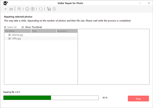 此JPEG恢复软件可以轻松提取严重损坏的JPEG文件的嵌入式缩略图,而不会影响其视觉保真度。此功能对于所有经过损坏或损坏无法修复的JPEG图像尤为重要。通过Stellar Repair for Photo,您可以获得这些文件的缩略图。