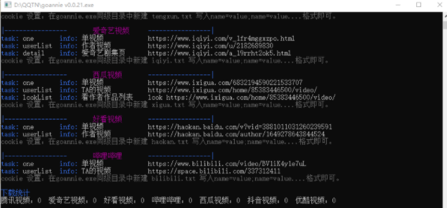 Goannie视频解析批量下载工具是一款十分好用的视频下载工具,视频高速下载,爆款视频免费下载,现在它还没有 gui ,经过命令行交互的方式操作,支撑批量采集,支撑BiliBili、爱奇艺、抖音等各大视频平台,帮助用户轻松下载各种视频资源,为视频的缓存下载提供了帮助,满足用户的视频下载需求!