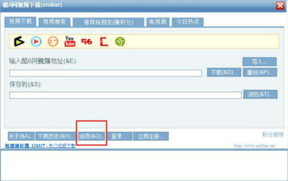 1、 运行酷6网视频下载(xmlbar),出现主界面;