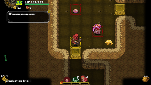 在你的行动之间会暂停,因此您可以分析情况并决定如何进攻,使用强大的物品或技能,甚至逃跑。每个动作都会耗尽您的《龙时间》,除非您受到攻击或中毒,否则它将治愈您,并且您可以通过发现新房间来补充自己的生命。但是要当心,如果您用光了龙时间,每个行动也会消耗生命!