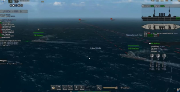 AI根据“免疫区”的原理评估最佳的啮合距离,通过比较自己的火力和您的军舰,AI会明智地使用弹药,或者选择停火,或者根据目标的装甲防护类型切换不同的炮弹。在遭受严重破坏或者比您的舰队弱得多的时候,除非有特殊的任务指令,否则AI不会进行自杀式的举动而会选择撤退。