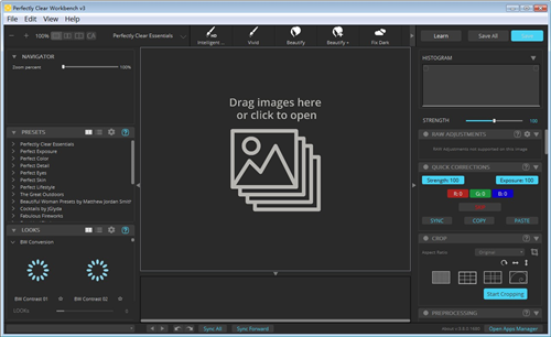 Perfectly Clear WorkBench(图像修复工具)是一款专业靠谱的图片修复软件,可以将模糊或者成像不完美的图片修复优化,为用户呈现完美的状态。用户可以在Workbench中进行图像校正,并调整设置以匹配您的样式和更正需求。软件提供了强大的人脸检测技术,支持快速导入、校正以及快速导出等操作,满足用户不同的使用需求。需要的网友快来点击体验吧!