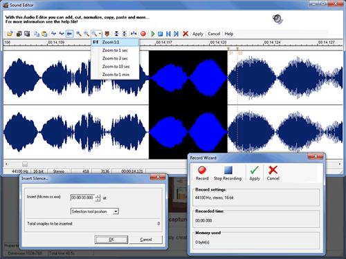 ALLCapture 让你可以实时捕获桌面活动并且创建一个可以被导出为 Flash, MPEG(DVD,VCD,SVCD),Windows 媒体播放器格式或者作为一个独立播放器执行文件的教育视频。一旦你录制了你的视频,你还可以插入注释,突出显示,添加/移除帧,插入特殊效果等。该软件支持全屏幕捕获以及指定区域的捕获。你可以选择在捕获帧的同时录制音频(演讲和/或者背景音乐),限制录制的时间以及选择包括或者不包括鼠标指针。