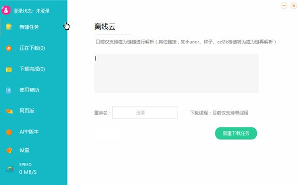 离线云是一款非常好用的磁力下载工具,主打磁力离线和下载的功能,凭借初色的下载速度、无版权限制的强大特色吸引了许许多多的粉丝,软件支持迅雷下载链接、BT种子、磁力链接等各种资源下载方式,能够帮助用户轻松创建下载任务,高速下载资源文件。离线云软件绿色小巧,而且下载不限速,可以为用户提供高质量的资源下载服务。