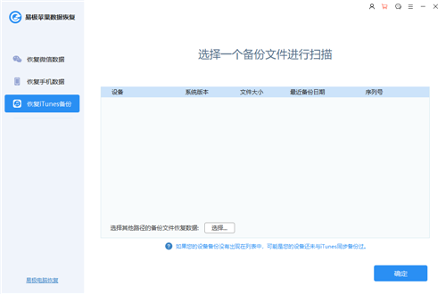 易极苹果恢复是一款专业的苹果手机数据恢复软件,它有友好的使用者体验和向导操作,您只需三步骤即可恢复数据:扫描-预览-恢复成功!它可以恢复iPhone/ipad的丢失数据,包括照片、视频、通讯录、书签、提醒和日历,也可以找回微信/qq等已删除的联系人、聊天记录、微信群、公众号、微信附件等!
