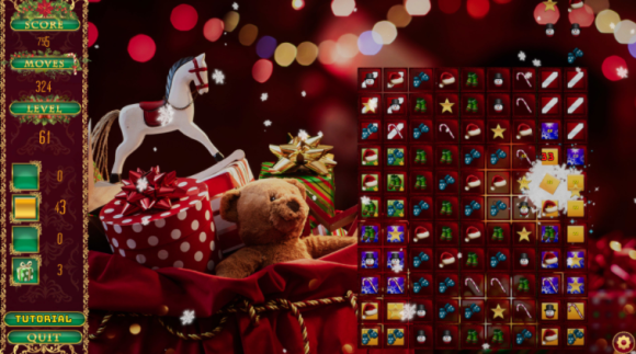 创建雪花宝石,当你摧毁它时,它会爆炸成一百片雪花,或者用一串串的灯光来摧毁一排排的宝石。圣诞老人宝石会摧毁所有与你匹配颜色的宝石。