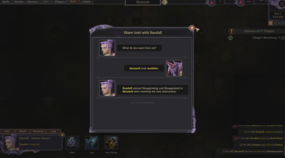受《Rimworld》和《矮人要塞》等故事生成器游戏的启发,编织痛苦和悲伤的故事是Ruinarch游戏玩法的核心。当然,你可以召唤一堆骷髅来攻击一个村庄,但是一个真正的邪恶领主会先玩弄他的猎物。给当地的英雄造成Lycanthropy和观看他曾经忠诚的朋友转向他时,满月升起。把一个当地的白痴变成一个连环杀手,有一个你自己设计的杀人模式。如果你觉得自己很懒,没有时间去创造,那就开始僵尸末日吧!