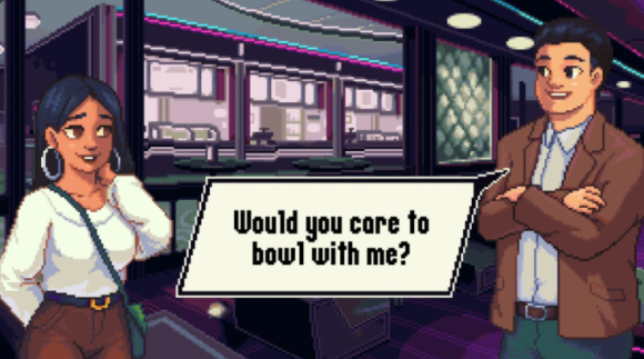 约会之夜保龄球破解版是一款全新的像素风格角色扮演类恋爱游戏。你将在保玲球馆寻找你的爱情。这里有着数十个不同的角色,你可以和她们约会,展现你的魅力和保龄球技术,让她们对你着迷。并通过与对方聊天,投喂食物,夹送娃娃来加深感情,让对方感到开心快乐。游戏的画风是像素画风,玩法趣味性高,感兴趣的话不要错过。