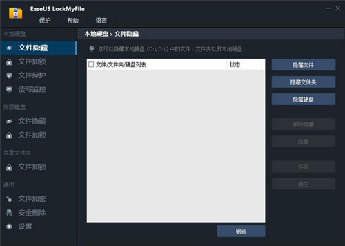 1.EaseUS File lock使用非常简单,以隐藏文件夹为例:点击隐藏文件夹