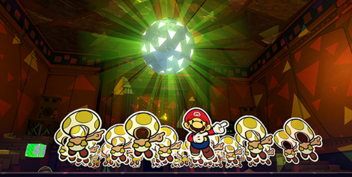 常规战斗中,马里奥站在战场圆环的中央,而敌人则分散在环的各个网格中。