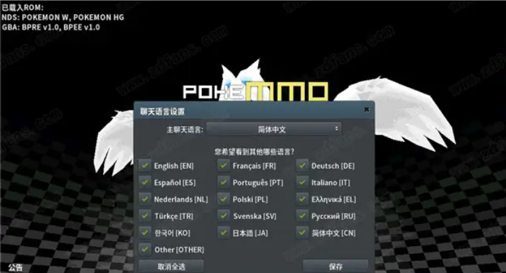 当前可选的内容ROM:火红、绿宝石 (EN/FR/ES/DE/IT)