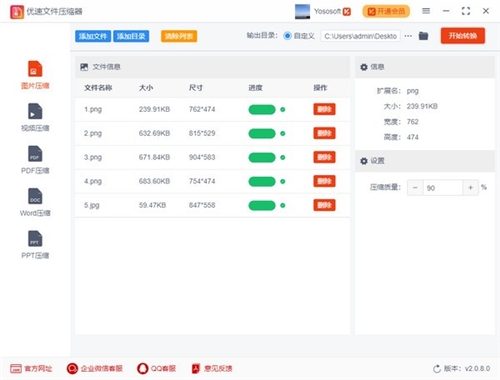 优速文件压缩器是一款高效的文件压缩软件,能快速压缩图片、视频、PDF、Word和PPT文件,操作简单,批量处理更高效。操作简单,功能还非常实用,可以很好的帮助大家对多种不同格式的图片、视频等内容进行压缩处理,并且还不会对原文件造成任何损伤。