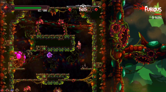 伴随着来自地狱深处的重金属音乐和像素风画面,勇闯恶魔巢穴,各种恐怖的怪物四处游走,陷阱张开大口,只为夺取你的性命。只有精妙的连招,灵活的跳跃和累积解锁的技能可以助你一臂之力,逃出生天。