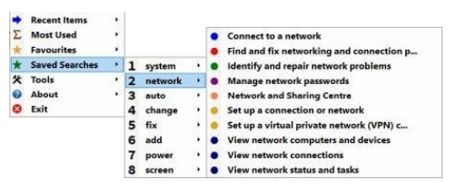 4、搜索引擎会根据您键入的字符立即列出结果。借助搜索框旁边的小图标,可以保存当前搜索,已经保存的搜索也会出现在这里。“那个保存的搜索系统托盘图标的菜单充满了与保存的搜索相对应的内容。这些菜单项按保存的搜索顺序排列,而子菜单按字母顺序排列。