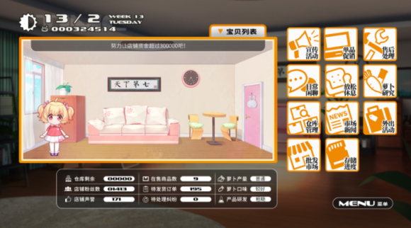 经营一家可爱的萝卜网店,和兔牙一起把它做大做强;