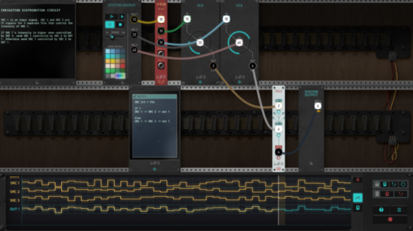 通过简明的拖拽操作来布设模块元件,连接线缆,来操纵输入信号。