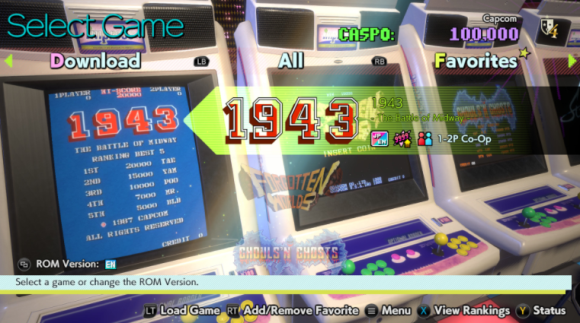 初始包含1款免费游戏《1943》,其余30款游戏分为3个独立DLC付费解锁,另外,还有一款《魔界村》可通过购买30款游戏的组合包解锁