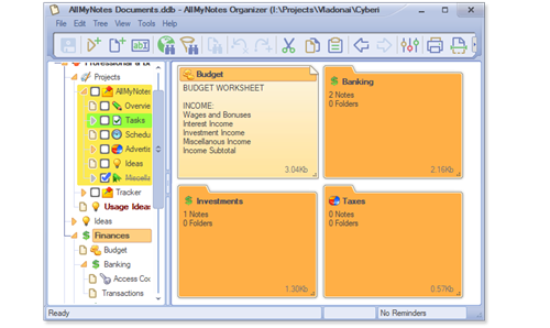 AllMyNotes Organizer 将在何处使用完全由您决定,它是一款适用于 PC 的自由格式信息管理器,您是否需要保留随机笔记、管理联系人的扩展记录、跟踪任务、建立自己的知识库、保存日记、这一切,还有更多可以委托给这个软件!