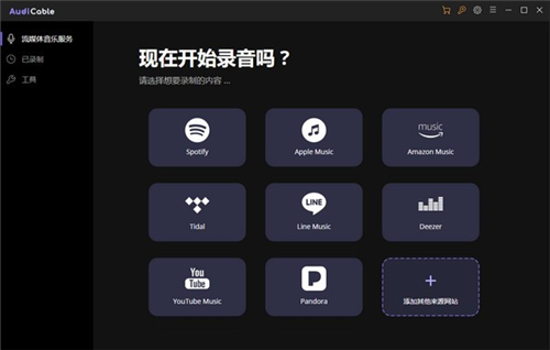 AudiCable是一款流媒体音乐录制软件,帮助用户录制各大流媒体音乐,支持不同格式,非常便利,录制并保留无损音频,使用也很简单。