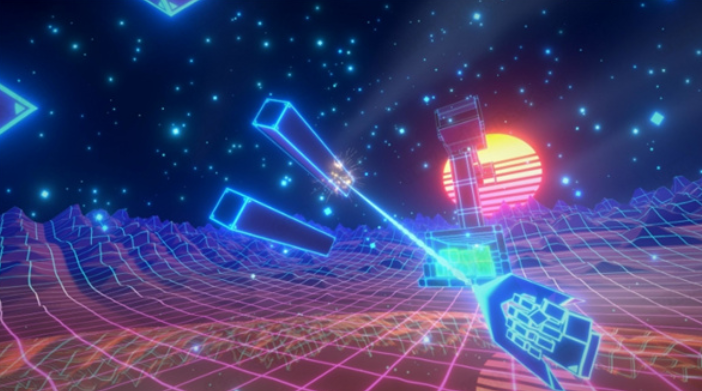 1、通过使用跑酷技能华丽retrowave世界速度和抓钩规模和乘坐墙壁这个快节奏的3D平台游戏;