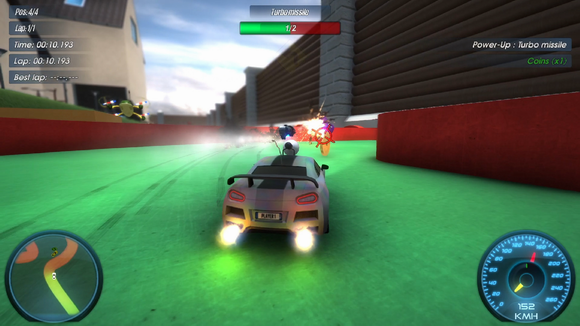 - 在比赛中,玩家可以收集临时增强物,例如地雷、火箭、烟幕等等。