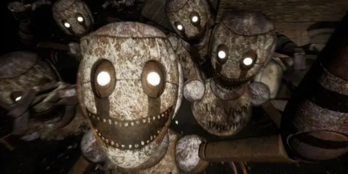 旧邦妮会和旧弗雷迪躺在某个角落里,其中旧邦妮的头已毁坏,只剩下了半个,露出整个牙床,显得异常诡异。