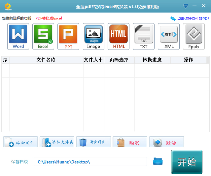 3、完成安装后打开全速转换器选择Excel,然后点击【添加文件】或【添加文件夹】,然后点击开始按钮