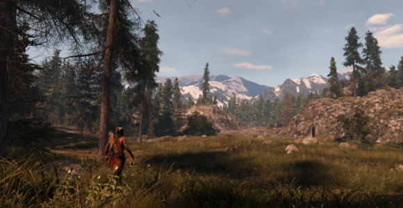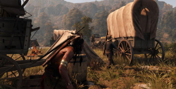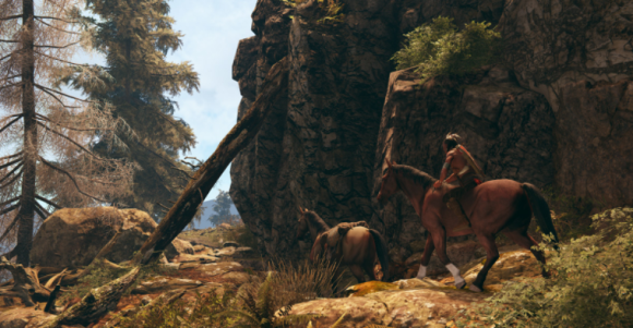 玩家扮演的北美原住民战士,可以骑马、刺杀和射箭,甚至还可以“骑马射箭”和使用步枪