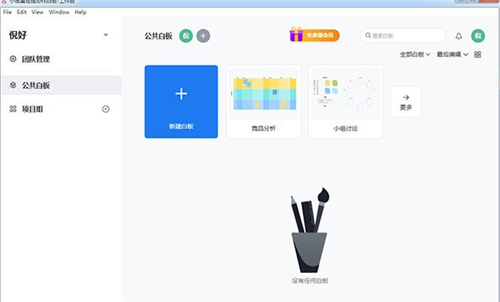 小画桌是一款团队协作效率工具,当你注册进入小画桌后,默认拥有一个3人的免费版团队,此团队享有公共白板和默认项目组。可以邀请成员加入你的团队,也可以新建团队。
