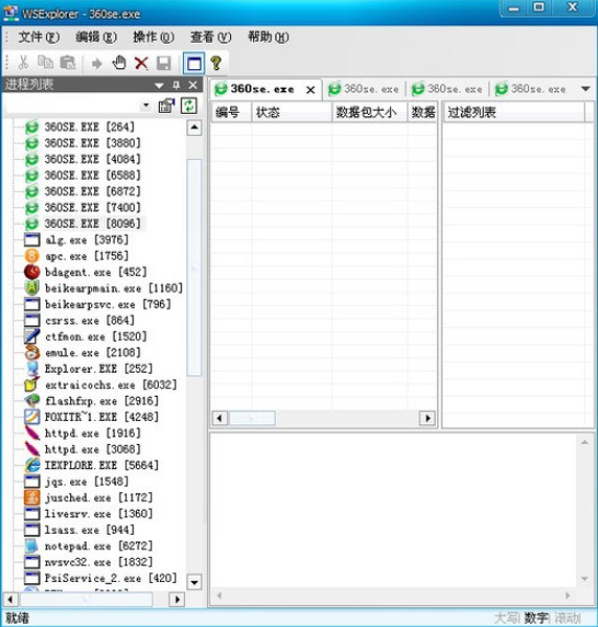 2、貌似一些权限比较大的进程不能抓包,提示不能打开XPSP3系统。(IE7以上的IE都是多线程方式打开页面,在抓包的时候注意选对线程)所以我们开发了这款抓包工具,在以前的抓包工具的基础上更人性化了,美化了界面和添加了过滤功能。