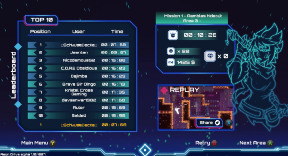 自由在时间中穿梭!Aeon Drive 赋予玩家独特的时间扭曲系统,帮助玩家避免遭受重复的挫败,并保持挑战关卡的新鲜感。